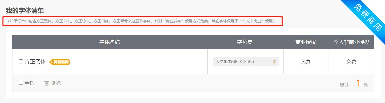 因此,针对“商业发布”这种使用方式免费,并且无需方正公司进行授权操作,直接使用即可!